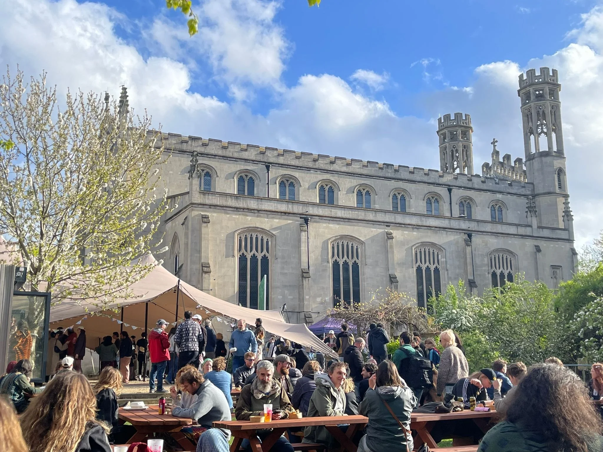 Although it was a bit difficult to get in the festival spirit when it hailed on our walk down to Old Market, the sun came out just in time. We arrived at the Trinity Centre to blue skies and the sound of music floating to our ears from the tent set up just behind the church. At the opening act of the festival, big long sun, everyone in the crowd looked like they could be playing in one of the bands, and who knows maybe some of them were! Seeing the same faces and spotting various members of the bands throughout the day gave the festival a pleasant, community feel.
