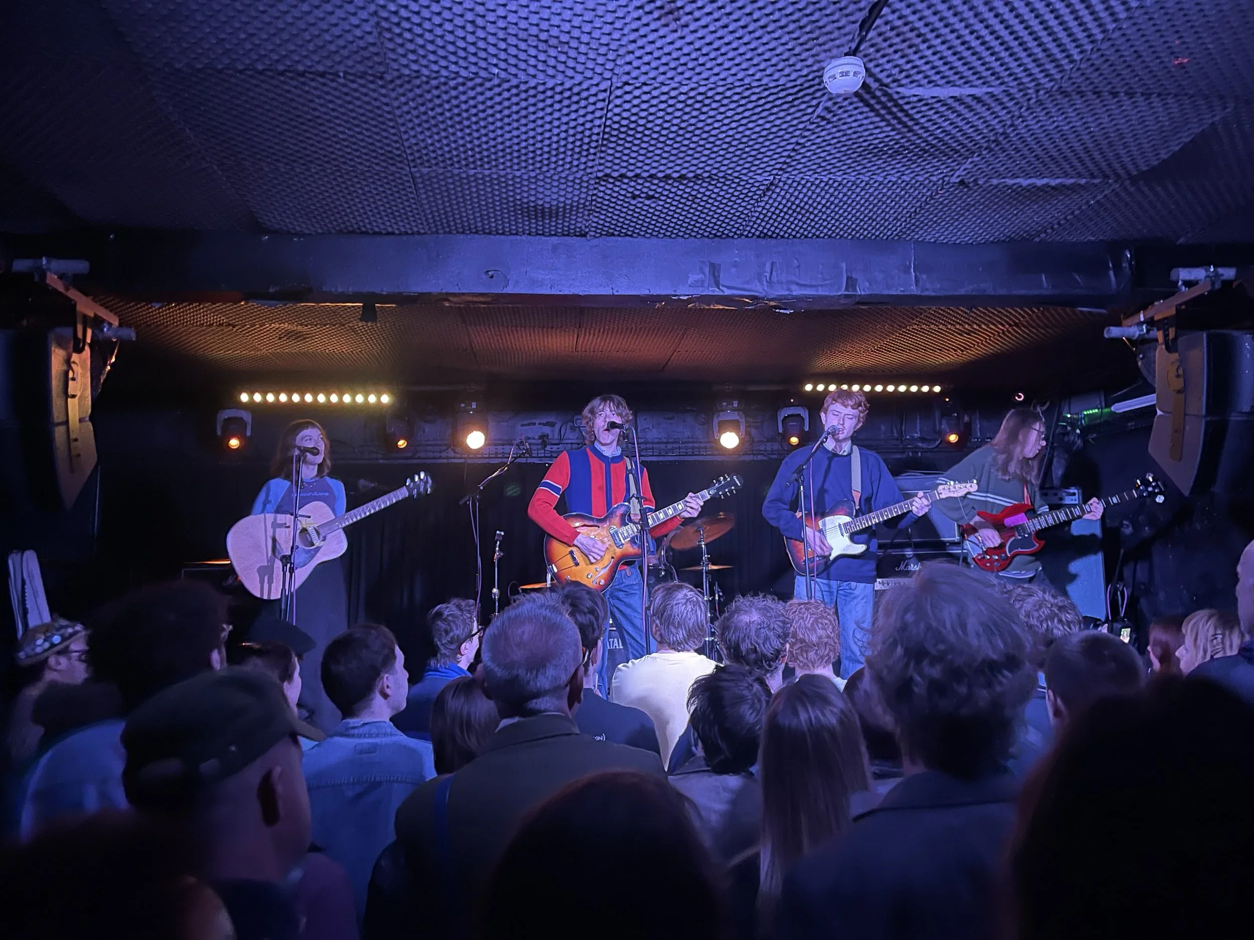We could have stayed in the comfort and good company of To The Moon watching the other acts curated by Skydaddy, AKA producer and songwriter Rachid Fakhre, but we forced ourselves around the corner to The Exchange. Transported instantly to a grungy nighttime gig by the dark lighting, The Cindys took to the stage, delivering their perfectly jangly folk rock. With members of the Belishas, Jack Ogbourne (who has released his own music under the name Bingo Fury) combined with Naima Bock, previously of Goat Girl, they are a supergroup of sorts, at least of a quite specific South West folk rock scene. Bock stood at the side of the stage, her effortless harmonies casually cutting through the rocky guitars and Ogbourne’s drawling, Julian Casablancas style vocals. Simple but heartfelt songwriting made for fun, catchy tunes, with single Dry TV standing out for its bittersweet lyrics. Having only found out about them on the day, The Cindys were my surprise favourite act of the festival, and I’ve been listening to their self-titled 2025 album on repeat ever since.